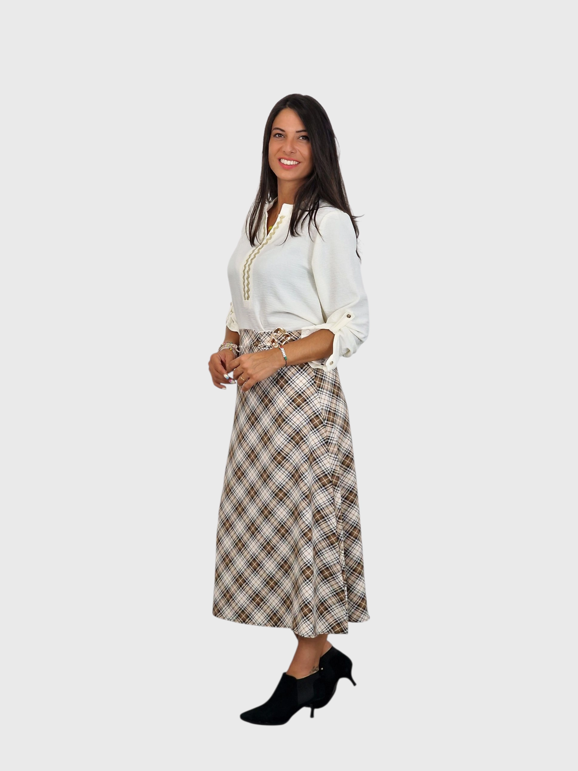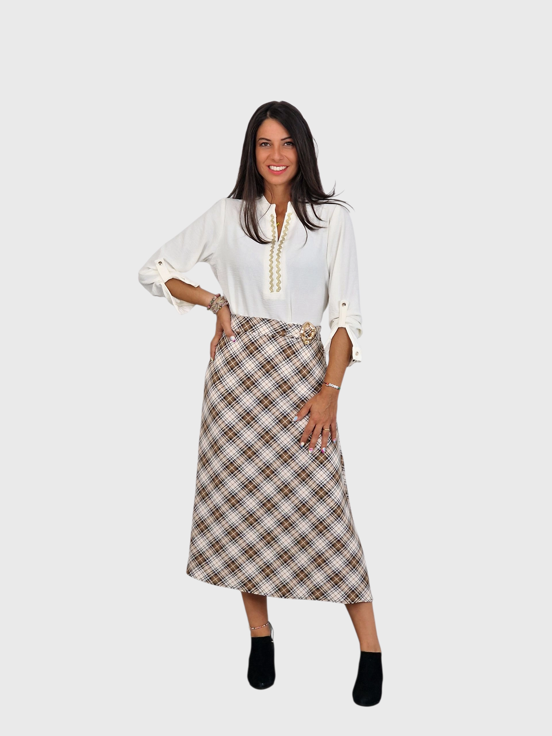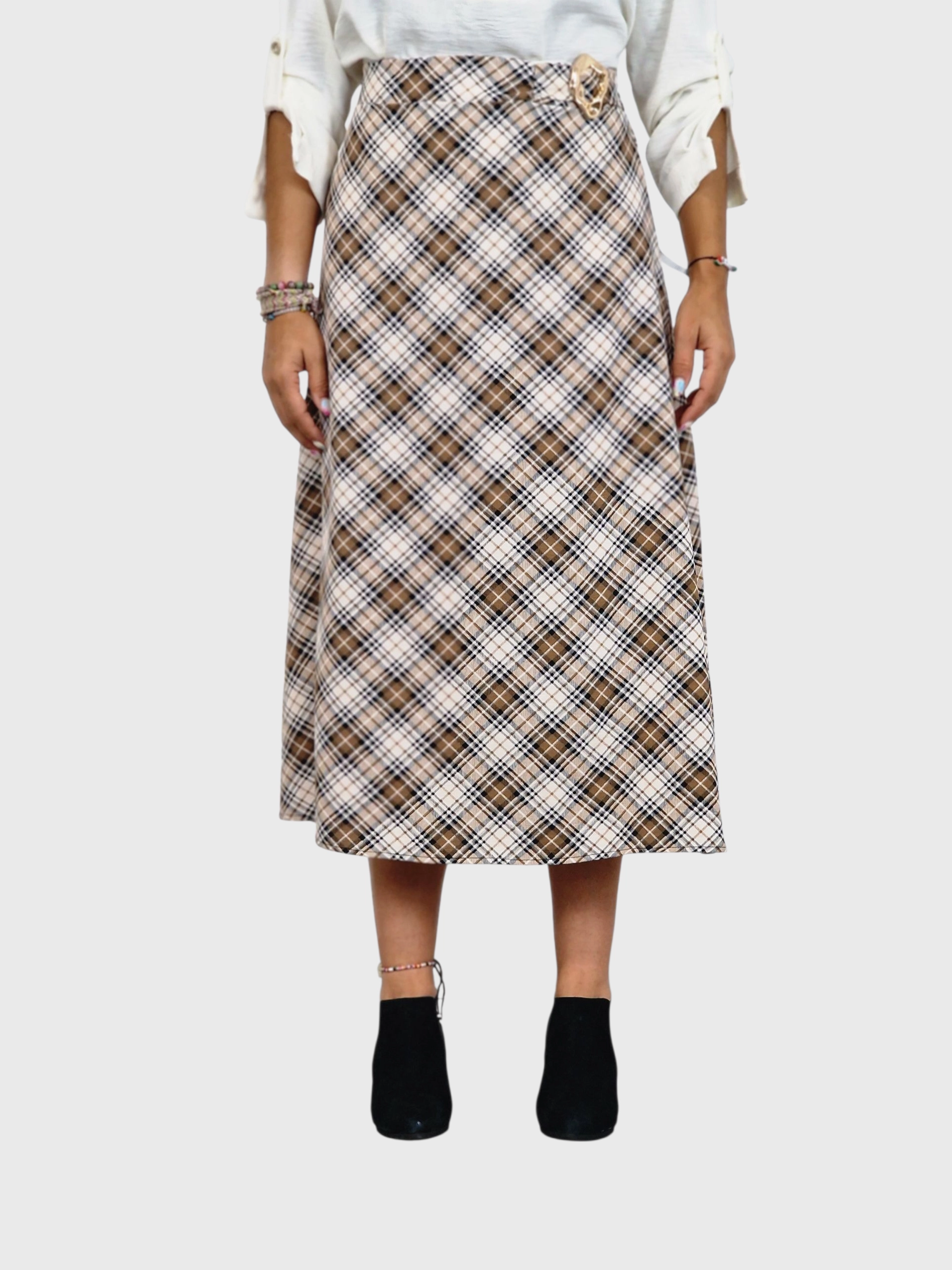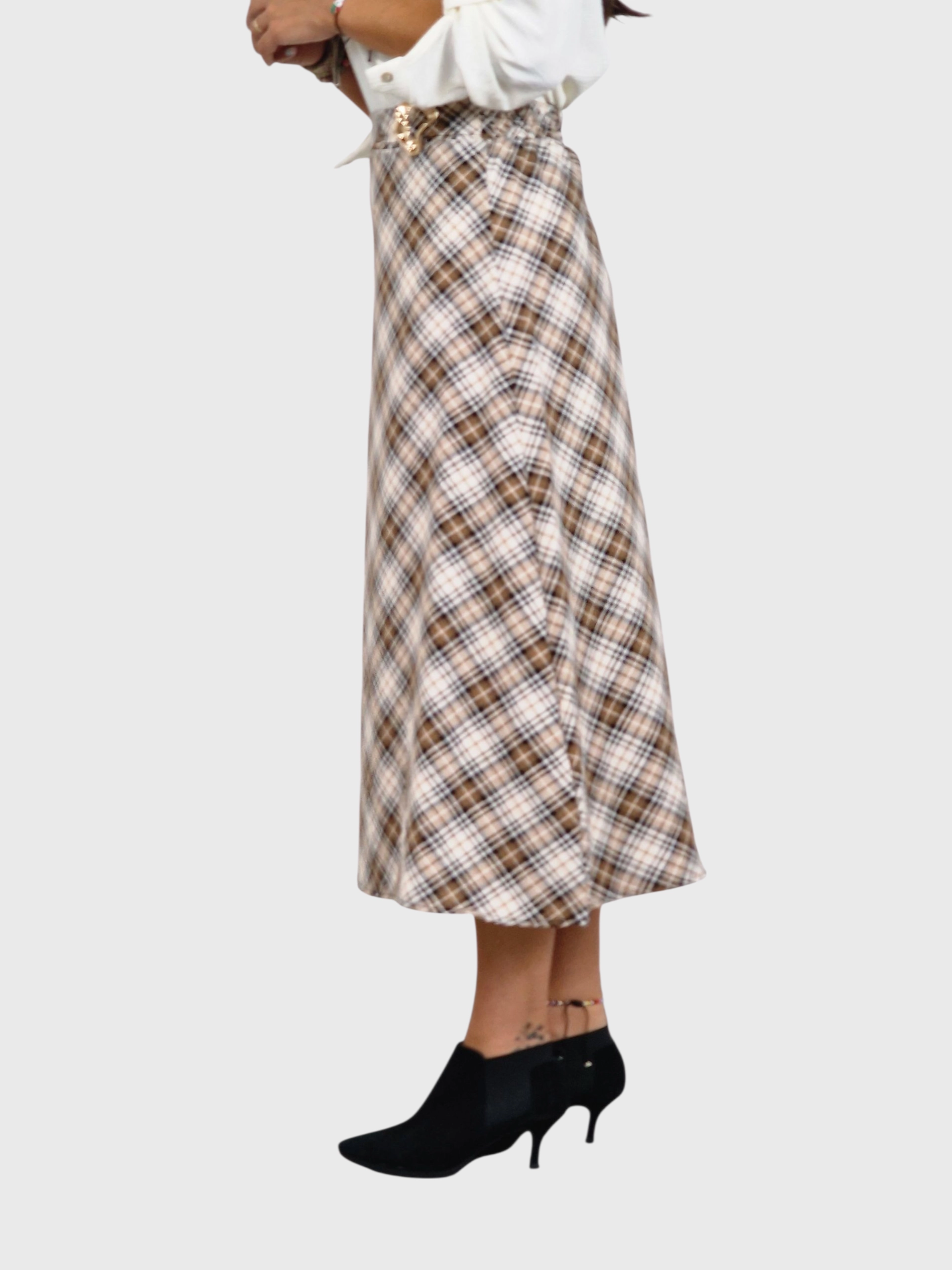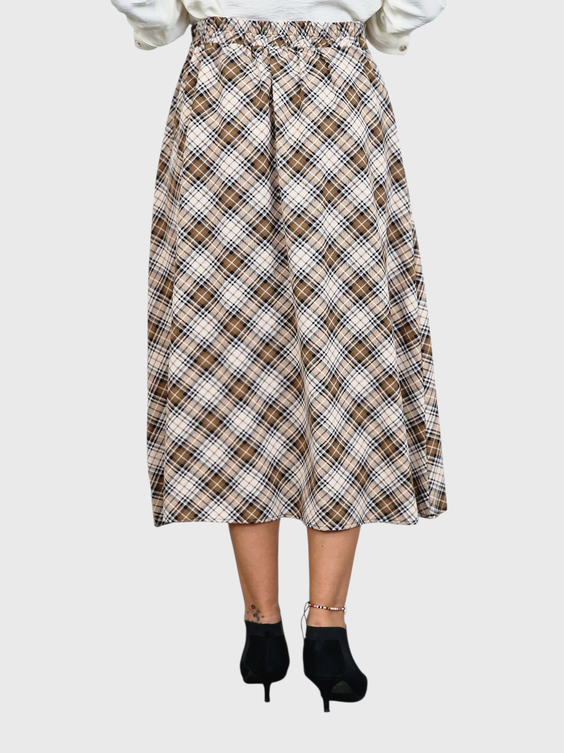 Falda larga a cuadros con cintura elástica por la parte trasera.