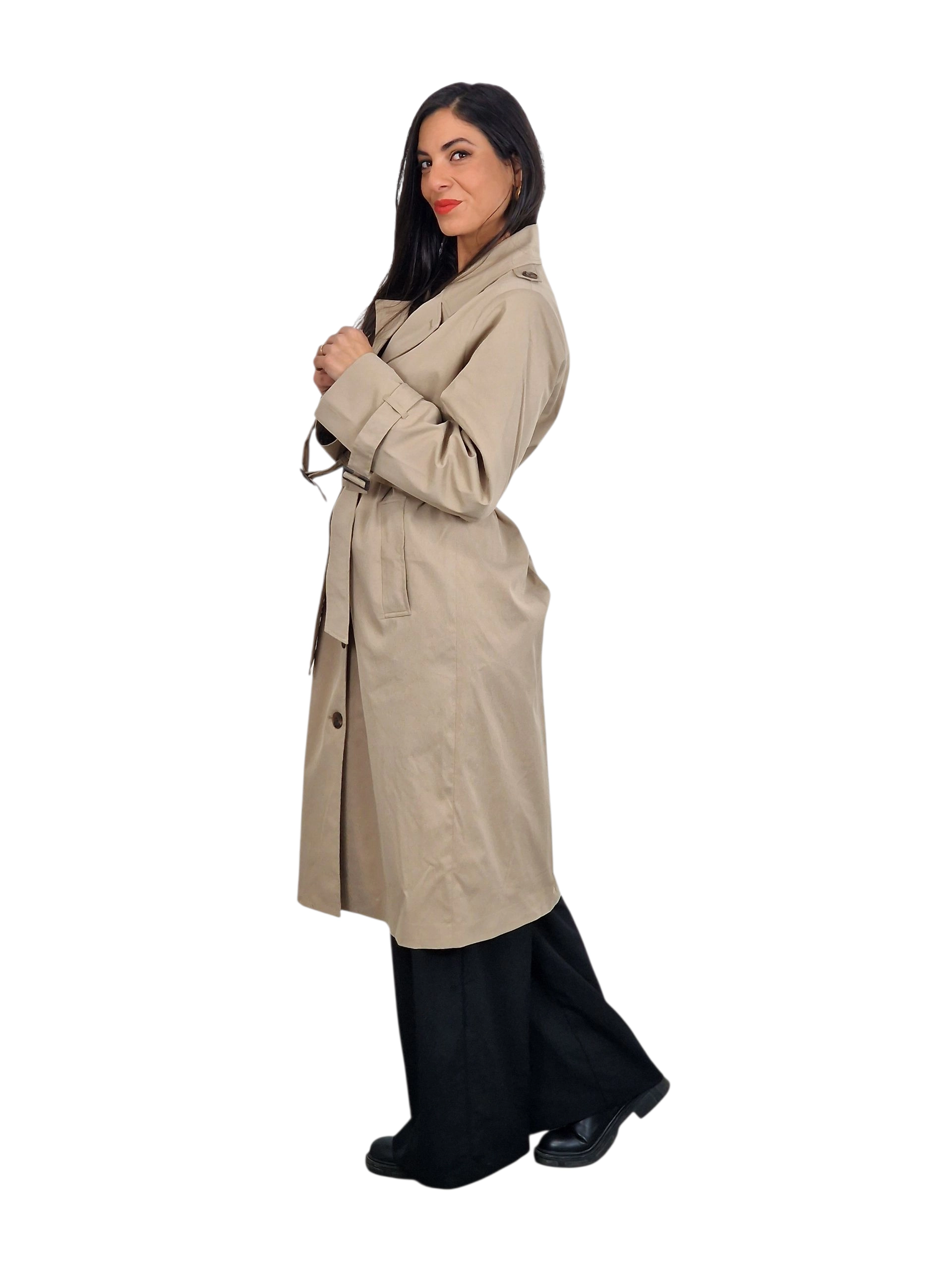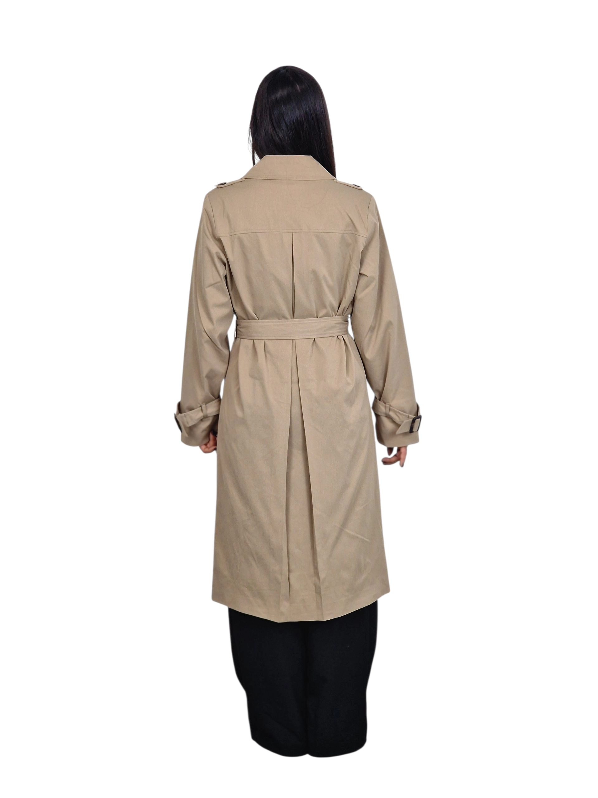 Gabardina corte clásico con pliegue en la espalda.