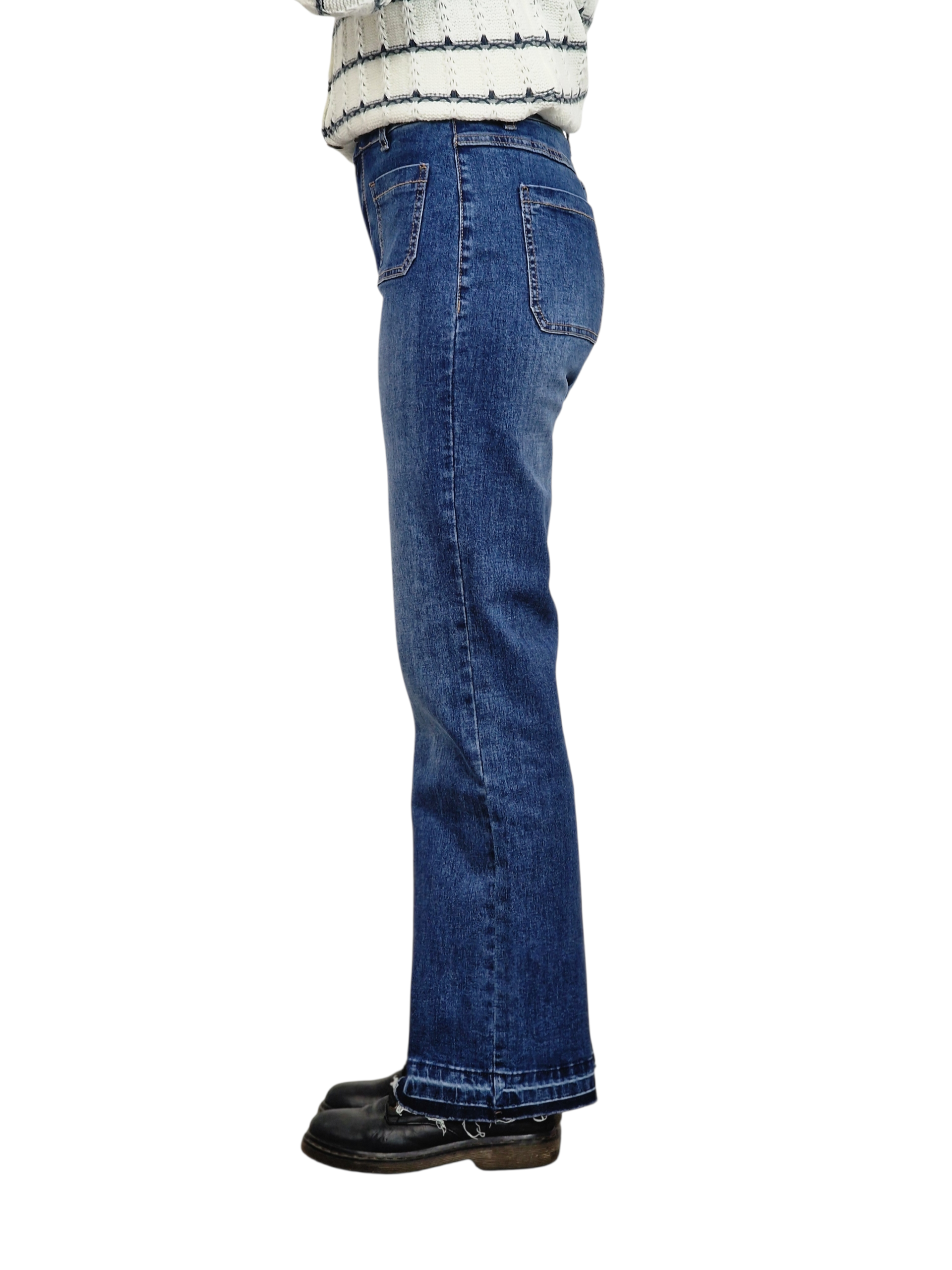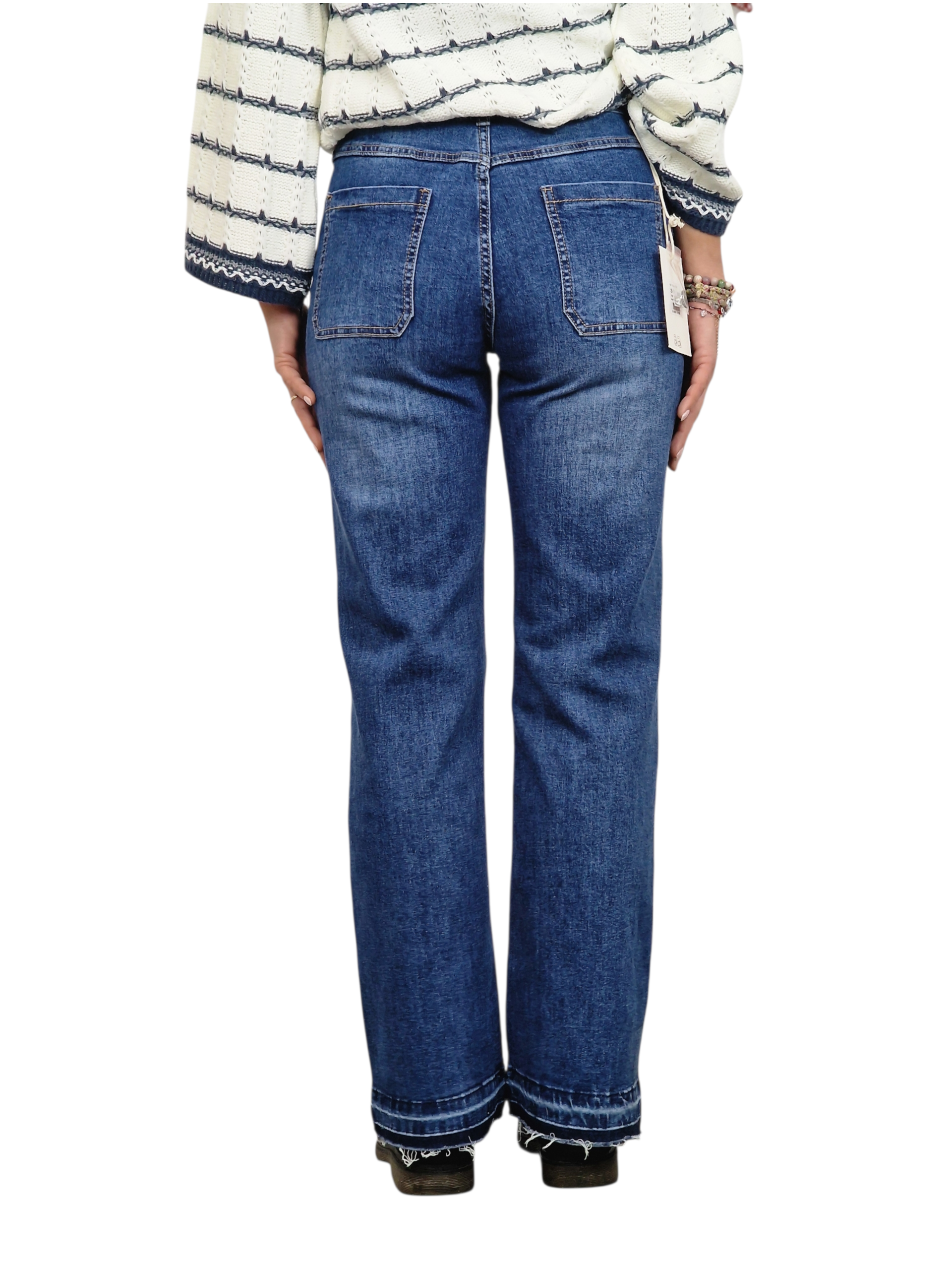 pantalón vaquero con pierna recta y bolosillos tafón.