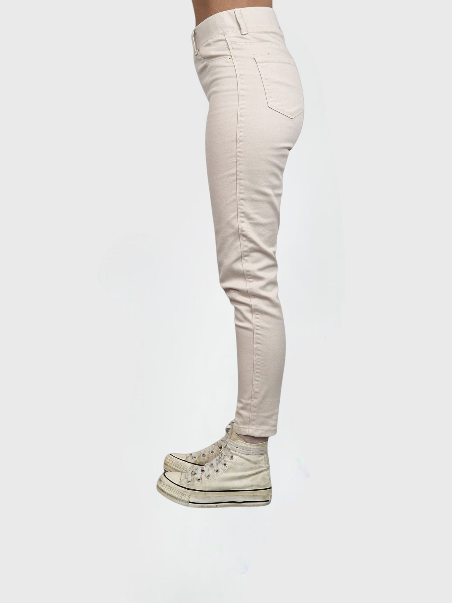 Pantalón pintillo, elástico, largo y con cintura de goma. Disponible en blanco, azul marino, verde kaki y arena.