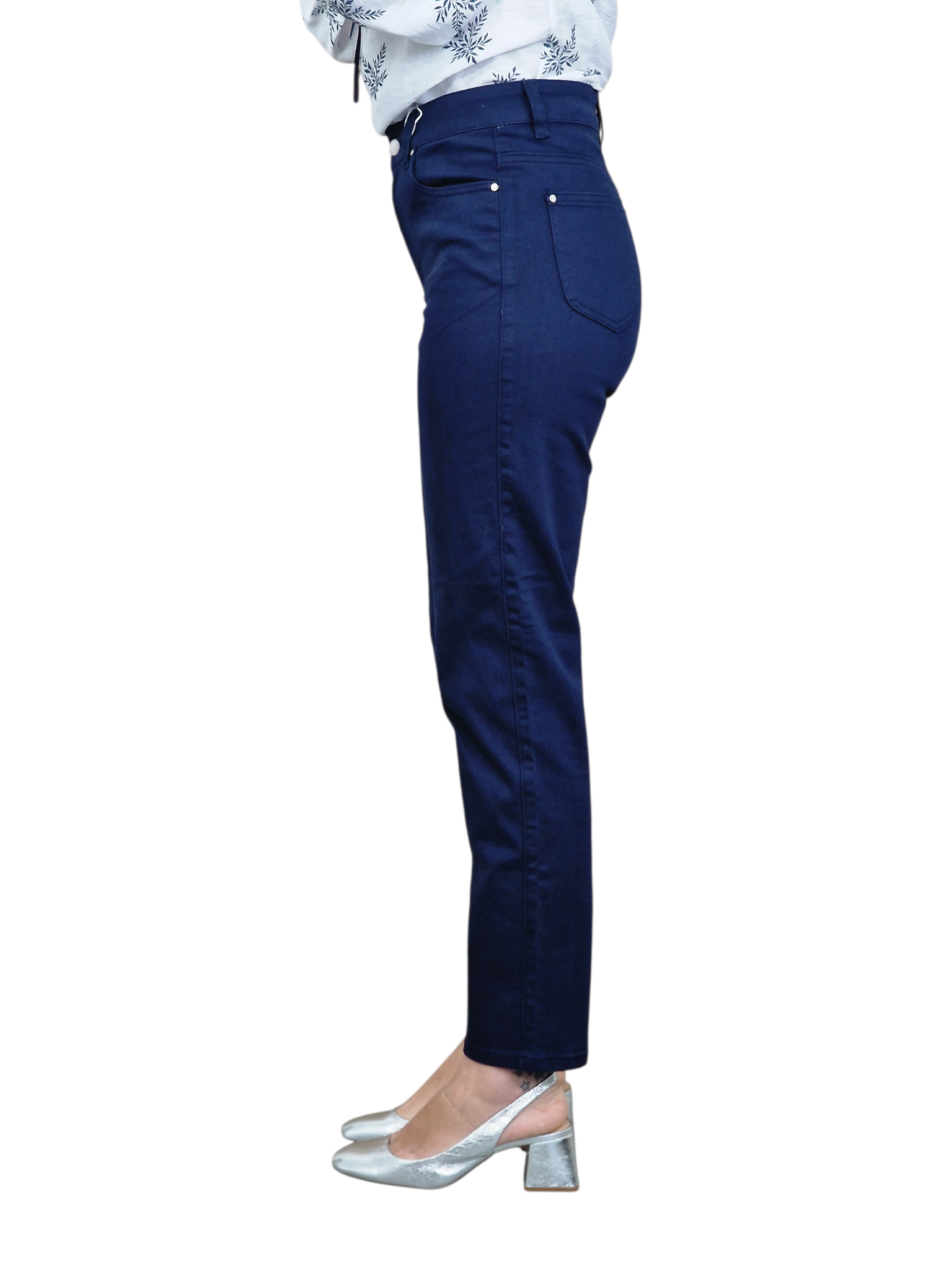 Pantalón de loneta corte vauqero, tiro alto y pierna recta. Disponible en blanco, marino, arena, verde y rosa chicle.