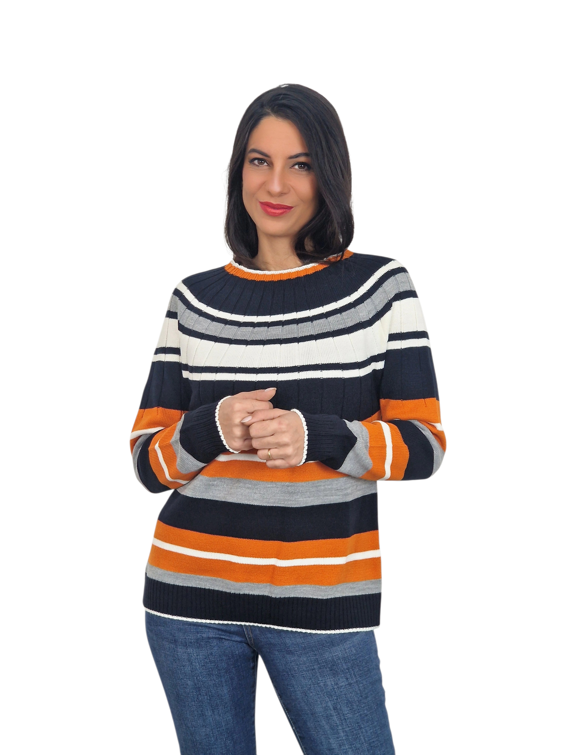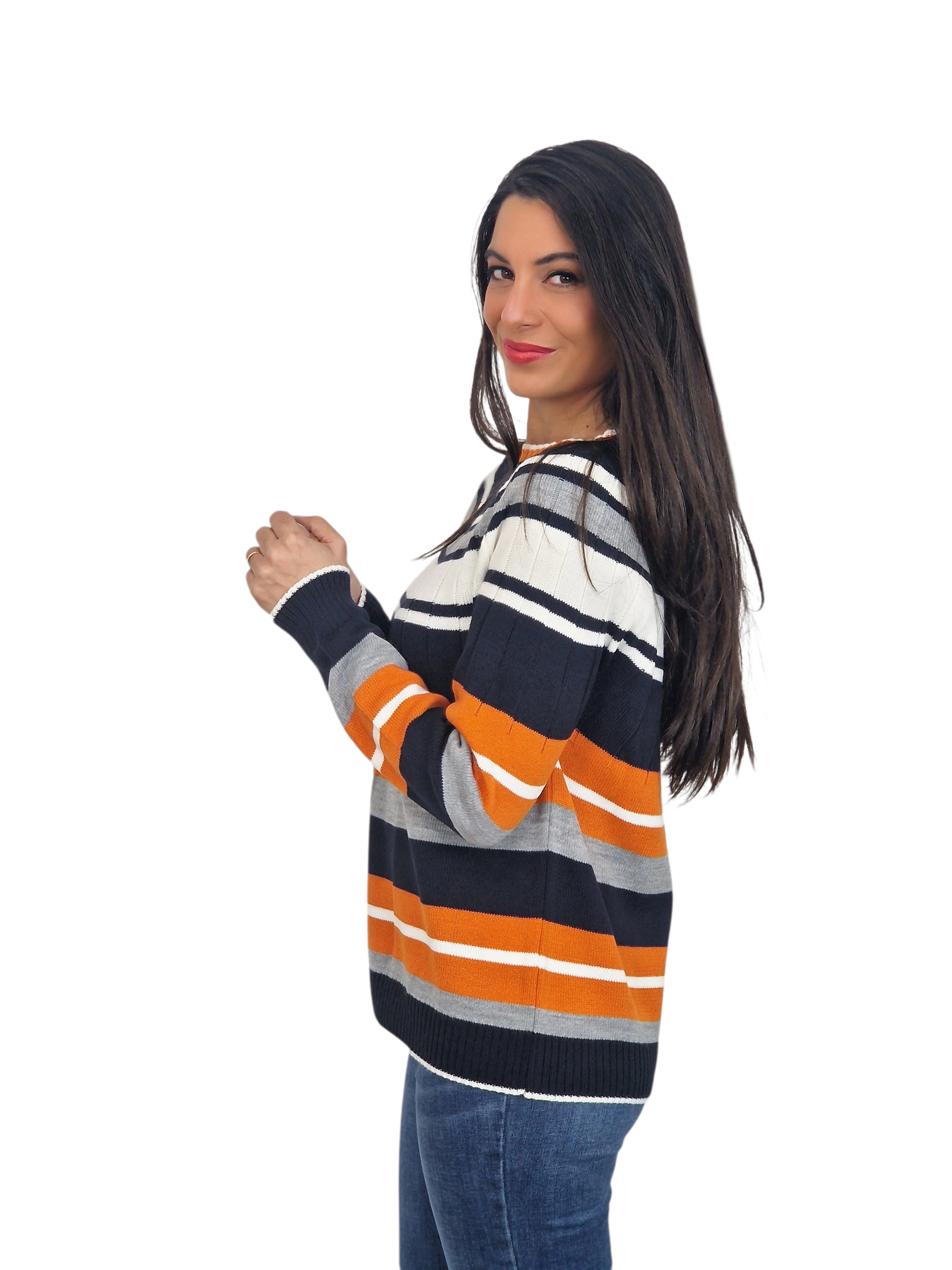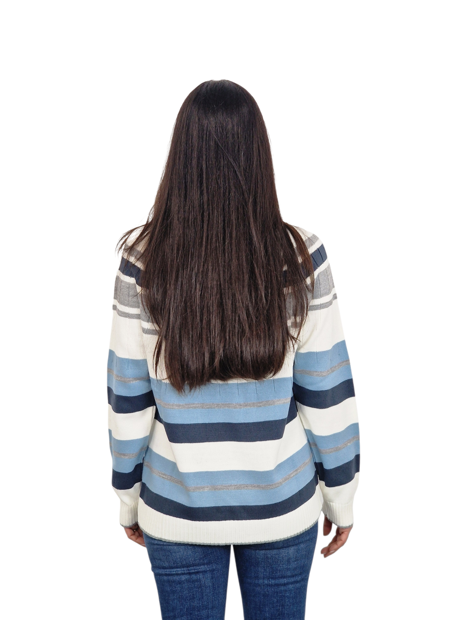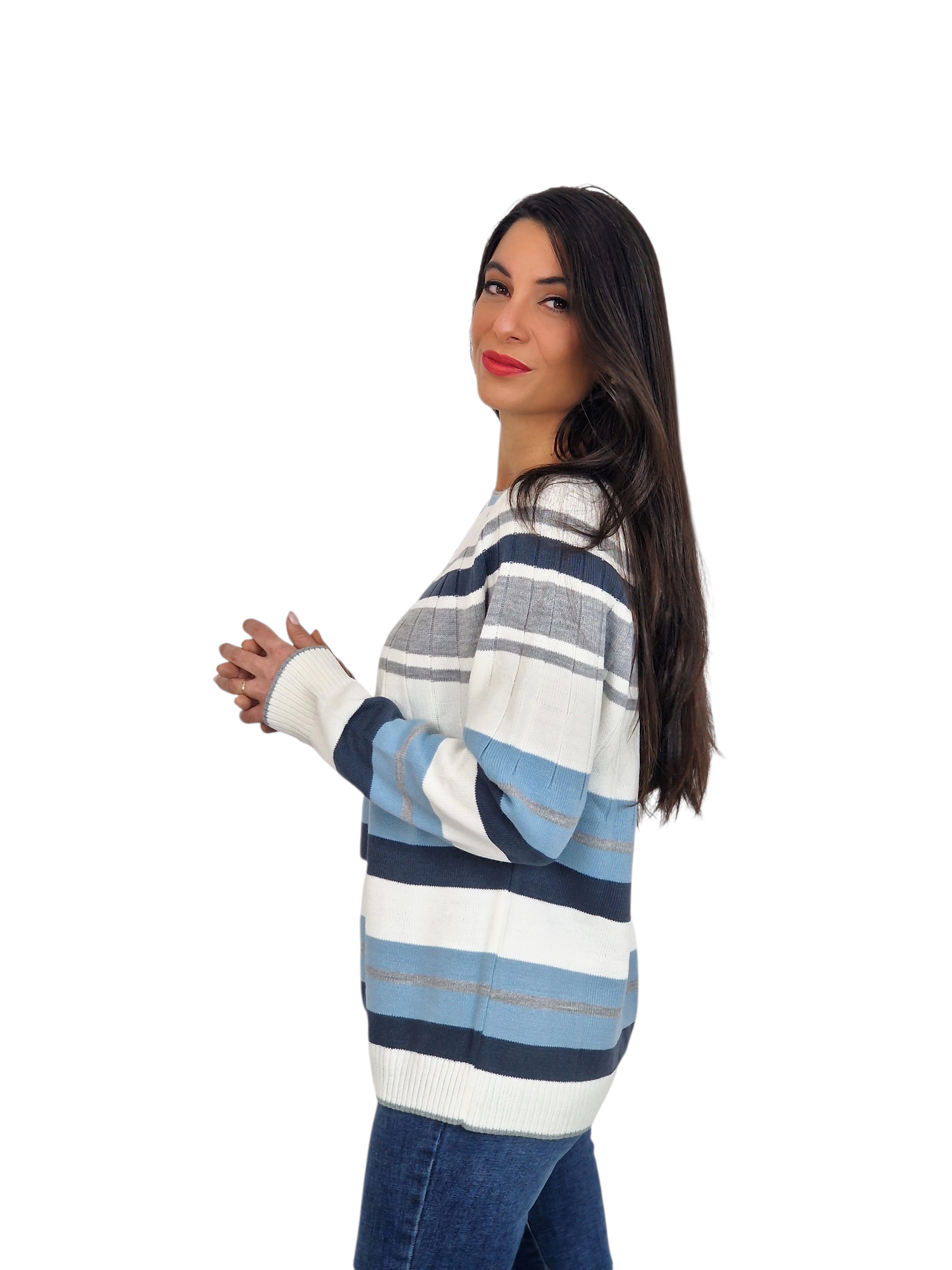Suéter de punto con cuello redondo.Disponible en marino, crudo y pruma. Chaqueta a juego disponiible.