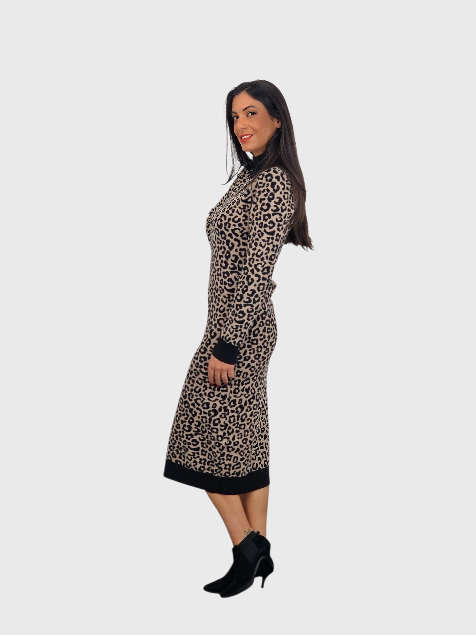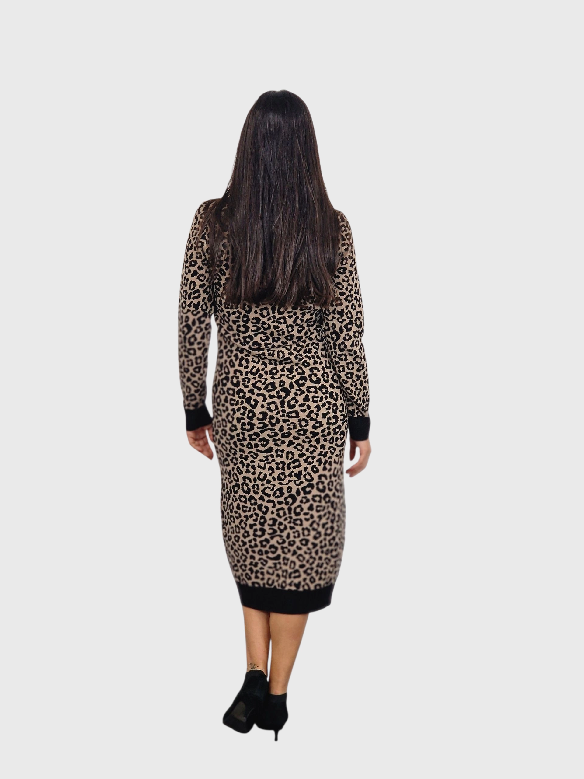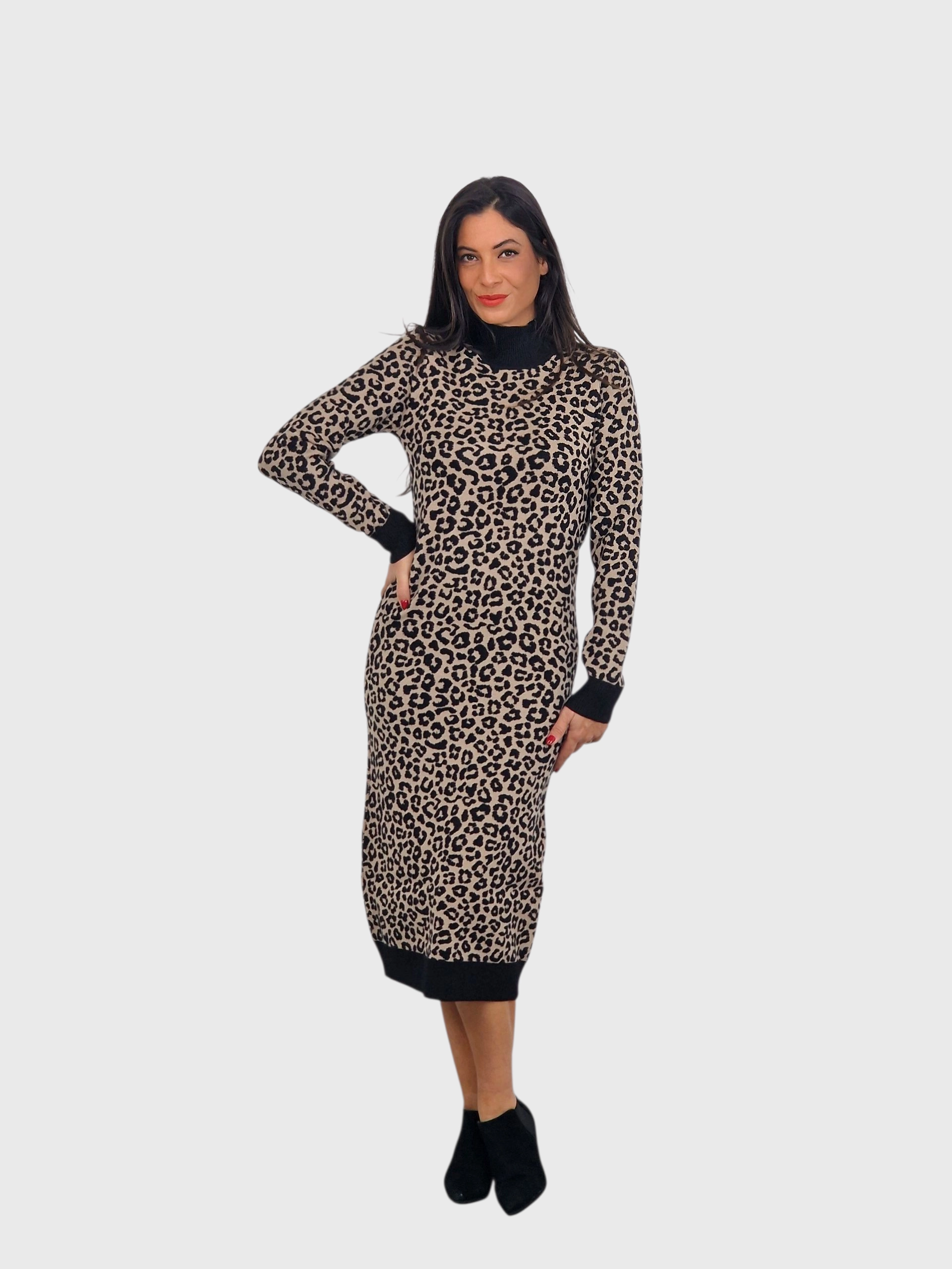 Vestido de punto lardo con estampado animal prit de leopardo, con elástico en puños y cuello.